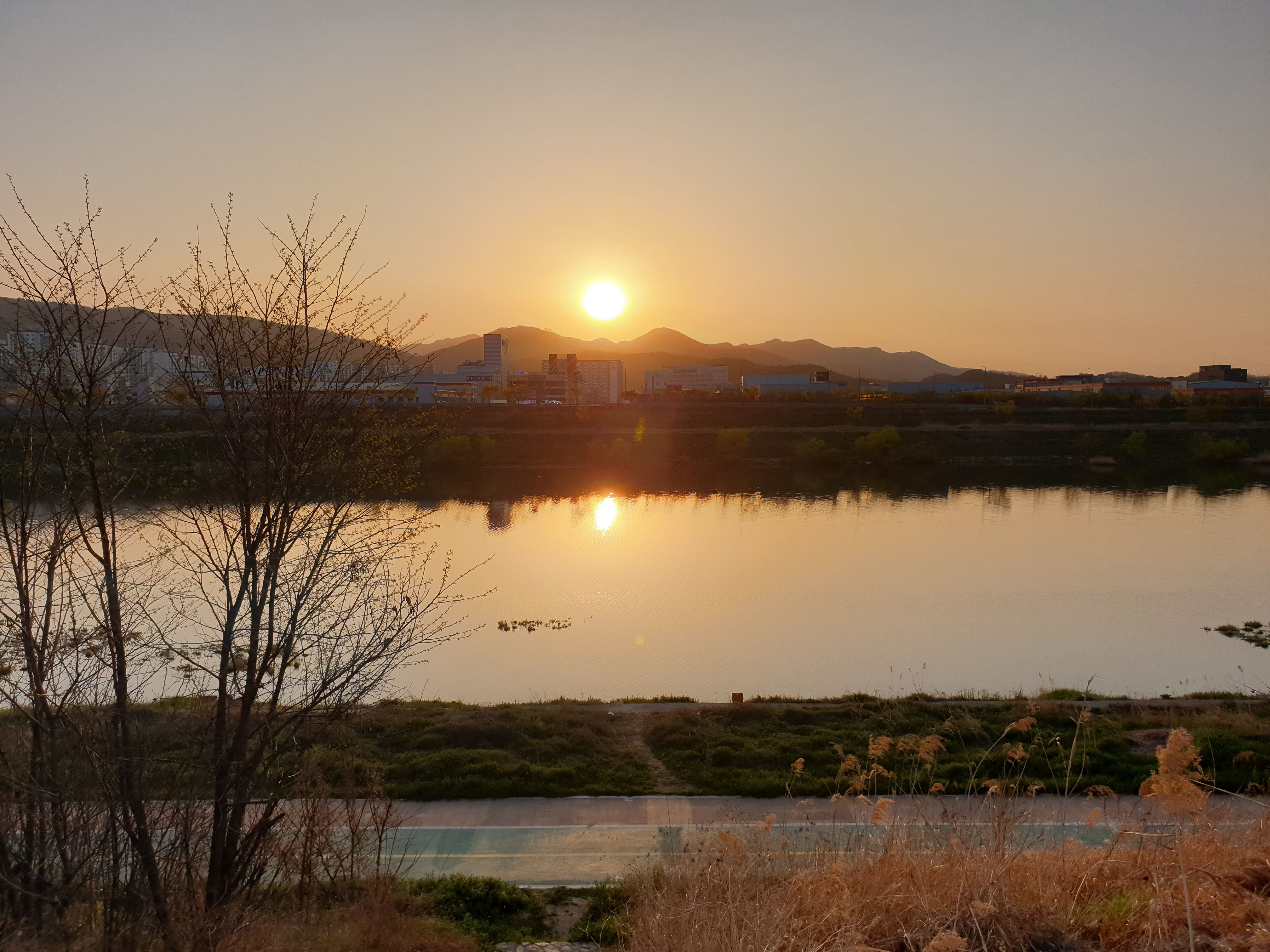 여튼 어슬렁 어슬렁 근처 강가로 나갔더니 해가 이제 막 떠오르기 시작한다.